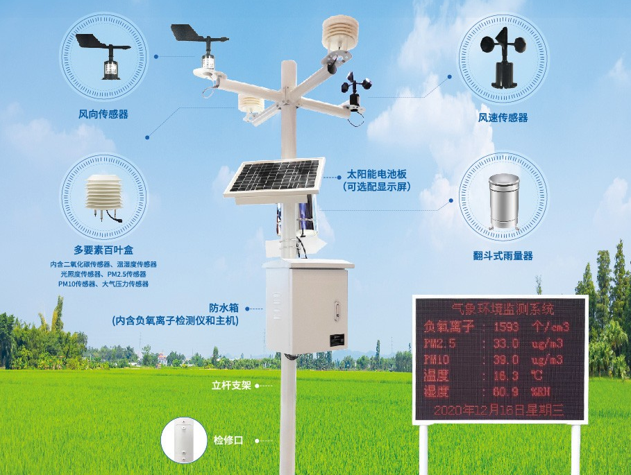 農(nóng)業(yè)氣象站是一種專業(yè)的氣象觀測站,它主要用于農(nóng)業(yè)生產(chǎn)中的氣象監(jiān)測、預(yù)測和服務(wù)。其作用在于為農(nóng)業(yè)生產(chǎn)提供精準(zhǔn)、實時、有效的氣象信息和決策參考,幫助農(nóng)民們制定科學(xué)、合理、有效的農(nóng)業(yè)生產(chǎn)計劃和措施,提高農(nóng)業(yè)生產(chǎn)水平和經(jīng)濟效益。