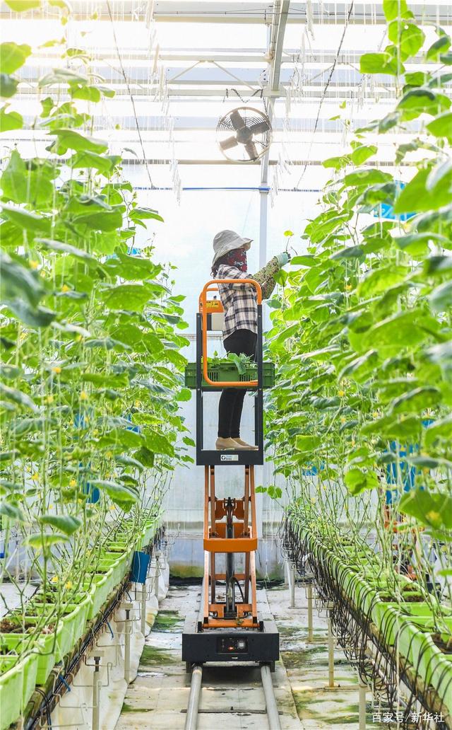 9月22日,在海南省陵水現代農業示范基地,工人為黃瓜苗吊蔓。新華社記者 周佳誼 攝