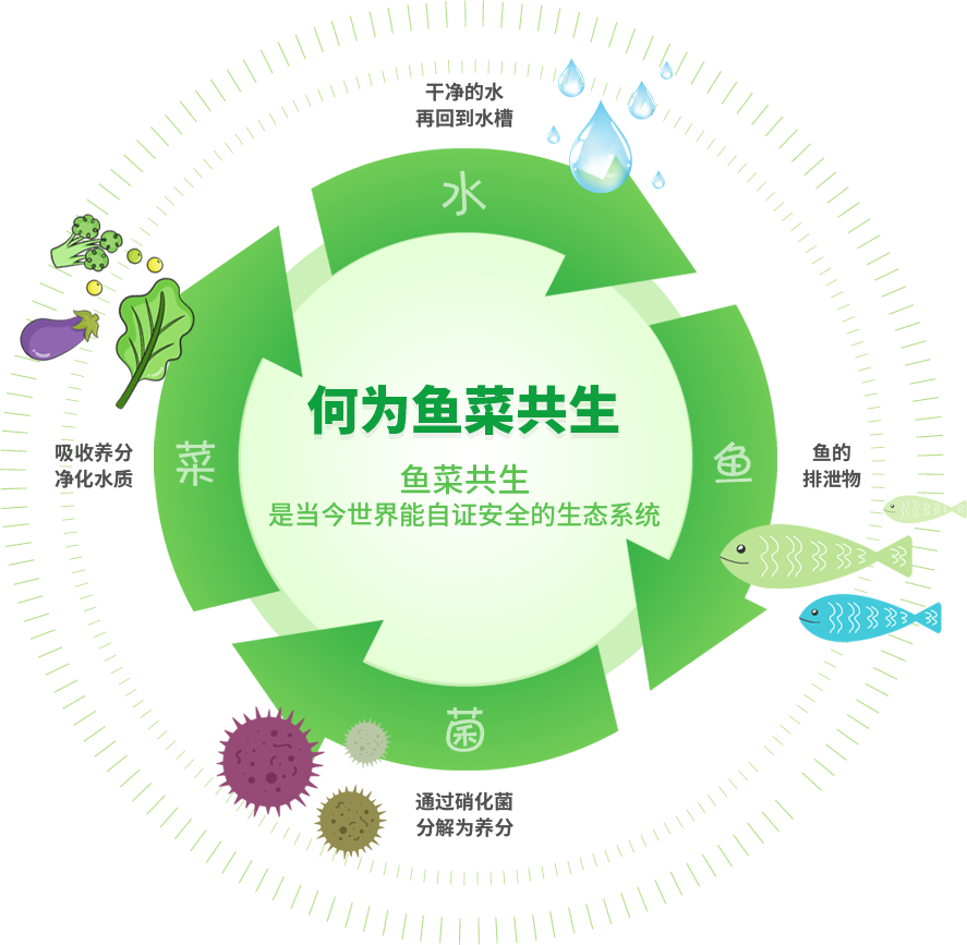 魚和蔬菜共生模式是一種生態(tài)育種模式,科學(xué)地整合了兩種與魚和蔬菜無(wú)關(guān)的農(nóng)業(yè)類型,利用兩種生物特性實(shí)現(xiàn)綠色循環(huán)發(fā)展,是對(duì)傳統(tǒng)農(nóng)業(yè)模式的偉大探索和創(chuàng)新。魚和蔬菜共生模式的最大優(yōu)勢(shì)是魚不需要改變水。蔬菜種植不需要施肥。該模式采用溫室技術(shù),在溫室內(nèi)建造魚塘,在結(jié)構(gòu)上表現(xiàn)為水池表面種植蔬菜。在蔬菜下養(yǎng)魚。魚塘分為上下兩層,底層為水區(qū),用于養(yǎng)魚,上層為溫室,種植各種蔬菜。魚塘安裝了一個(gè)特殊的過濾器。過濾器中的細(xì)菌將魚糞中的氨基鹽轉(zhuǎn)化為硝酸鹽,富含硝酸鹽的水被泵出來(lái)灌溉溫室中的蔬菜。該模式利用蔬菜根系的發(fā)展。生長(zhǎng)過程中對(duì)氮和磷的需求較高,形成了魚肥水-蔬菜凈水-水-水養(yǎng)魚的生態(tài)循環(huán)系統(tǒng),充分優(yōu)化了魚類和諧共生的理想狀態(tài)。