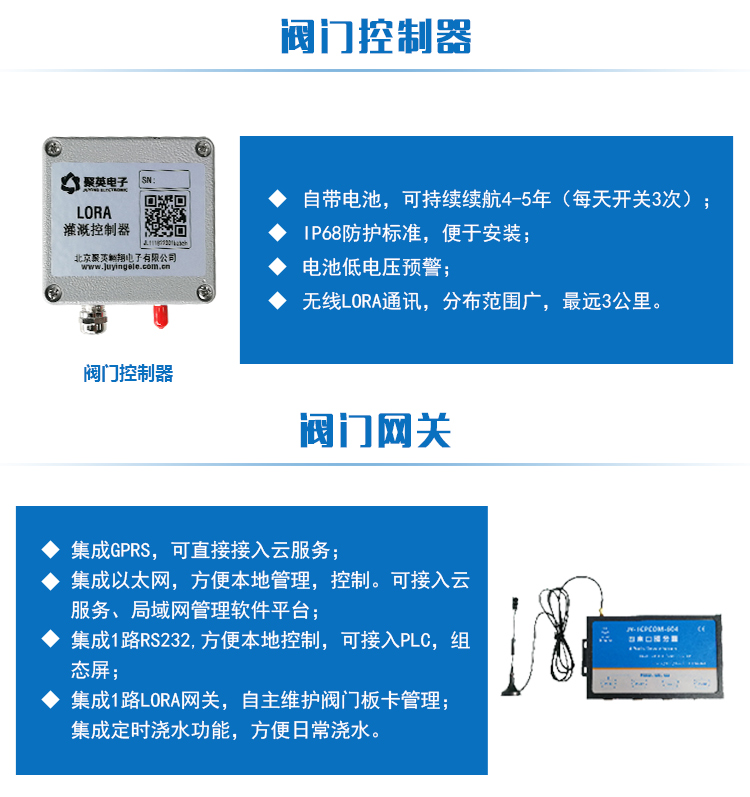 低功耗自帶電池,持續續航時間高達4-5年(每天開關3次),LoRa無線雖訊,無需鋪設通訊線纜,擴頻雖訊技水,分布范圍廣,最遠可達約3公里,集成云控制,手機電腦遠程實時操控;集成定時控制,定時控制,運行維護方便,適用于城市綠化、園林工程、智能灌溉、農業項目、花園草坪、噴滴澆水等場合